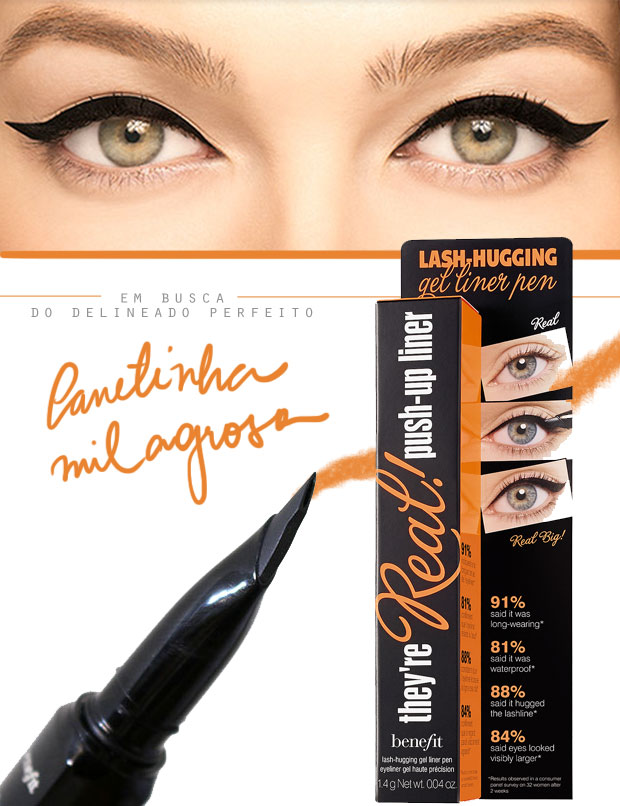 Hoje é dia do lançamento mundial de um dos produtos mais desejados de beleza do primeiro semestre de 2014: a caneta delineadora da Benefit. Esse “eyeliner” é da linha They’re Real, a qual pertence minha máscara de cílios preferida.